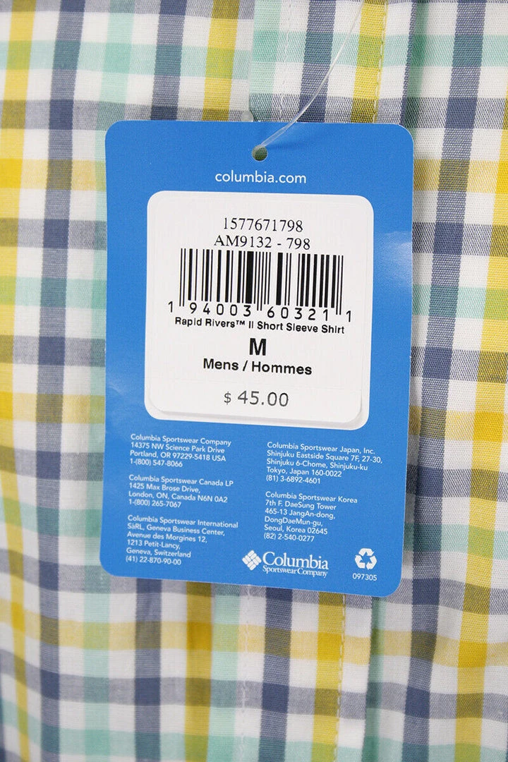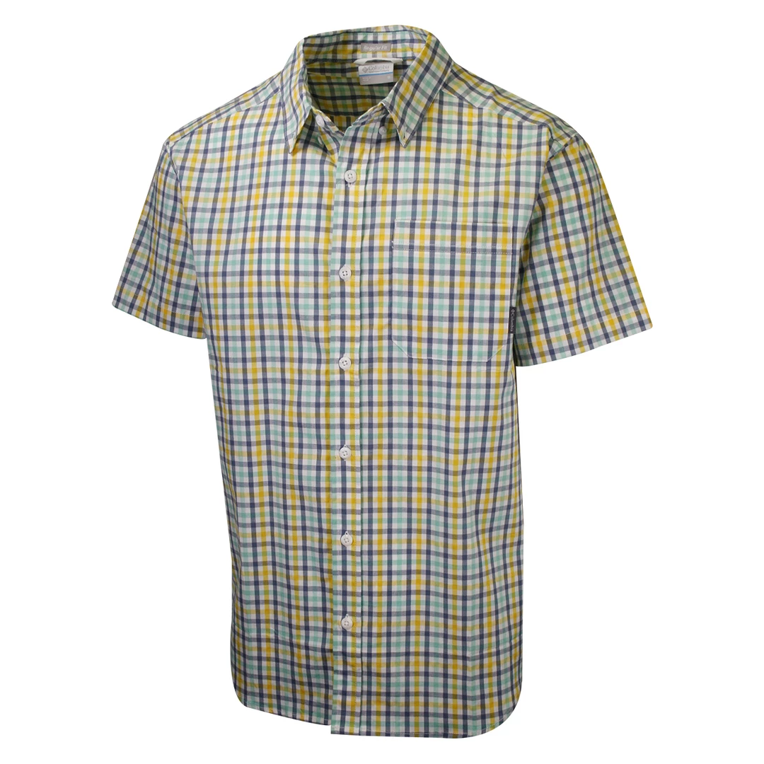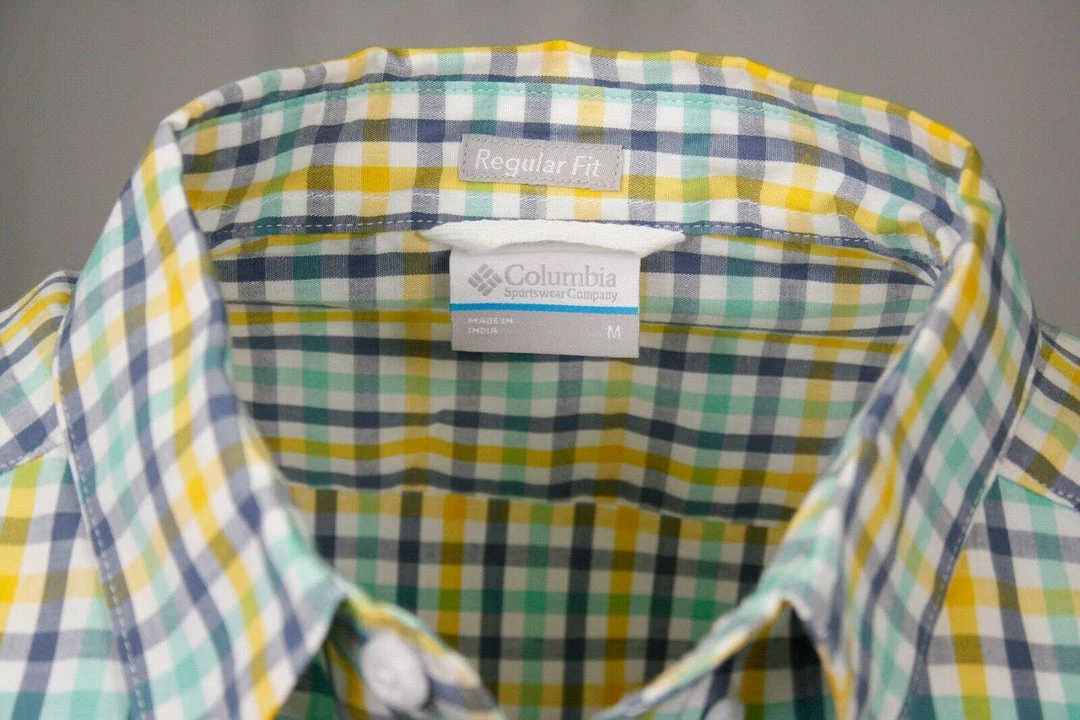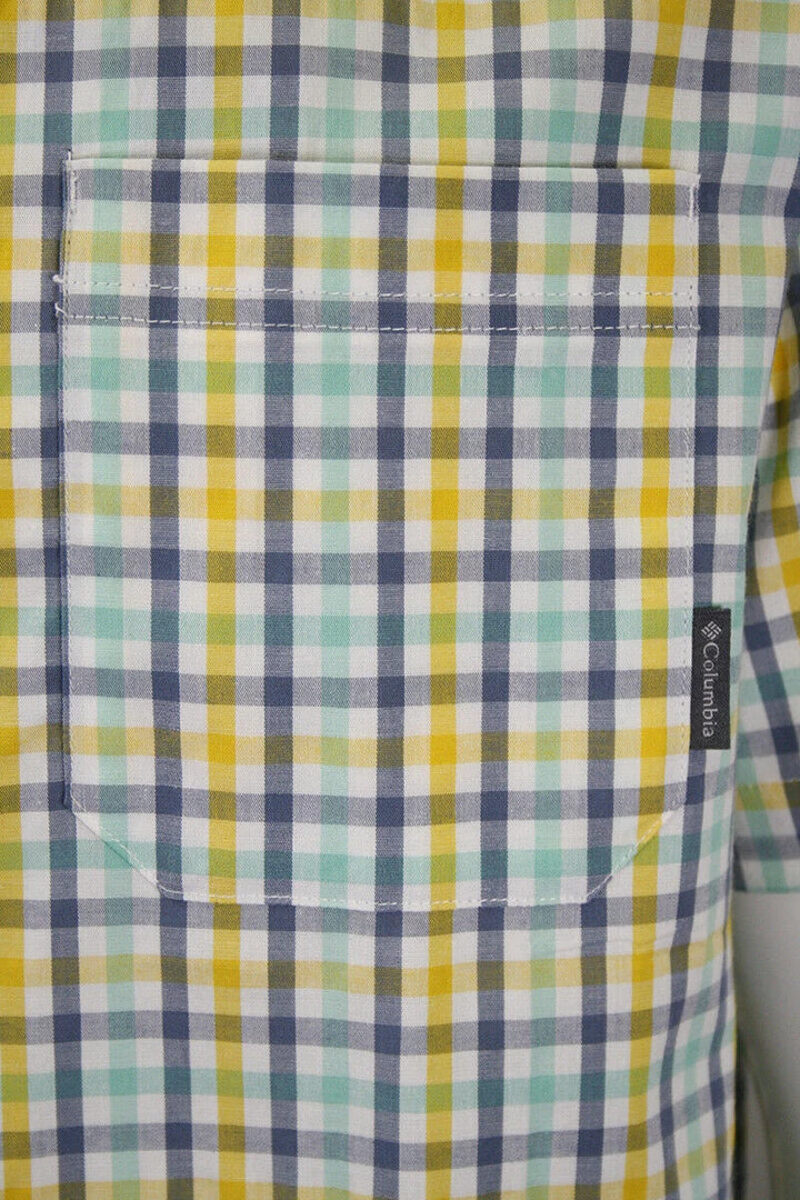 Columbia Men’s Yellow Blue Green Rapid Rivers II Plaid S/S Shirt (798) Medium