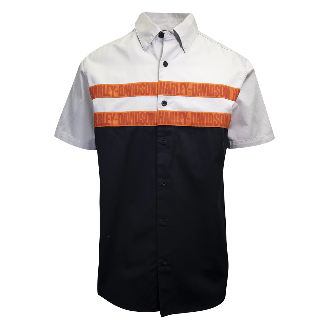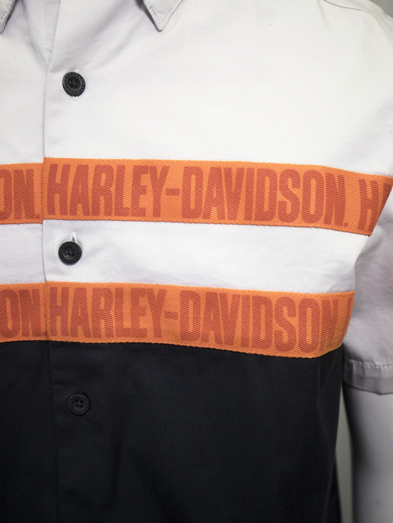 - Two Orange Harley-Davidson Text Stripe Designs Across Chest & Back