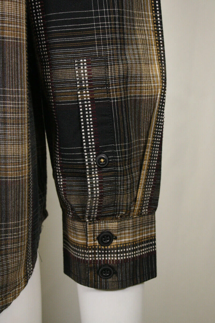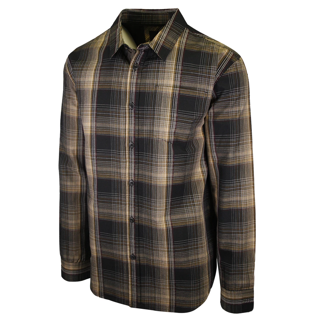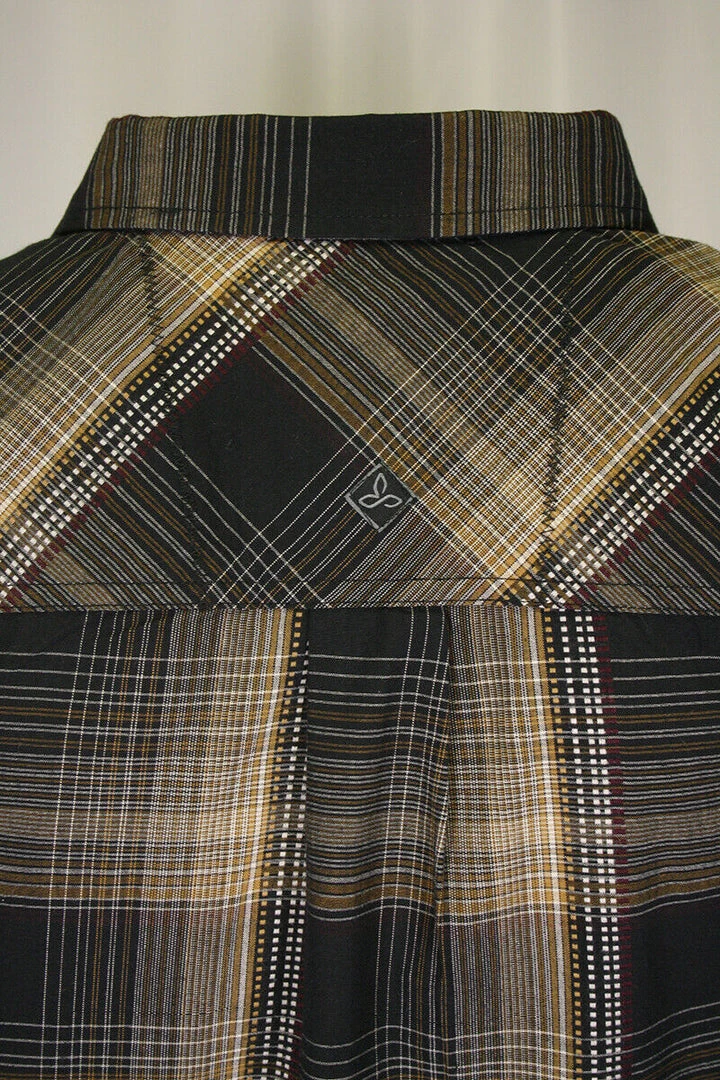 PrAna Men’s Black Yellow Burgundy Plaid L/S Woven Shirt (S62)