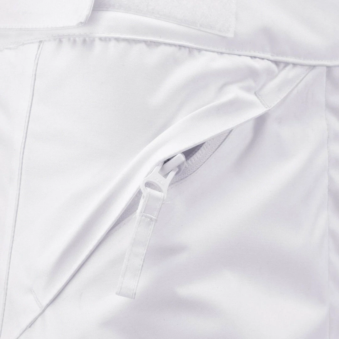 Adjustable velcro waistband Belt loops Zip fastening with a hook